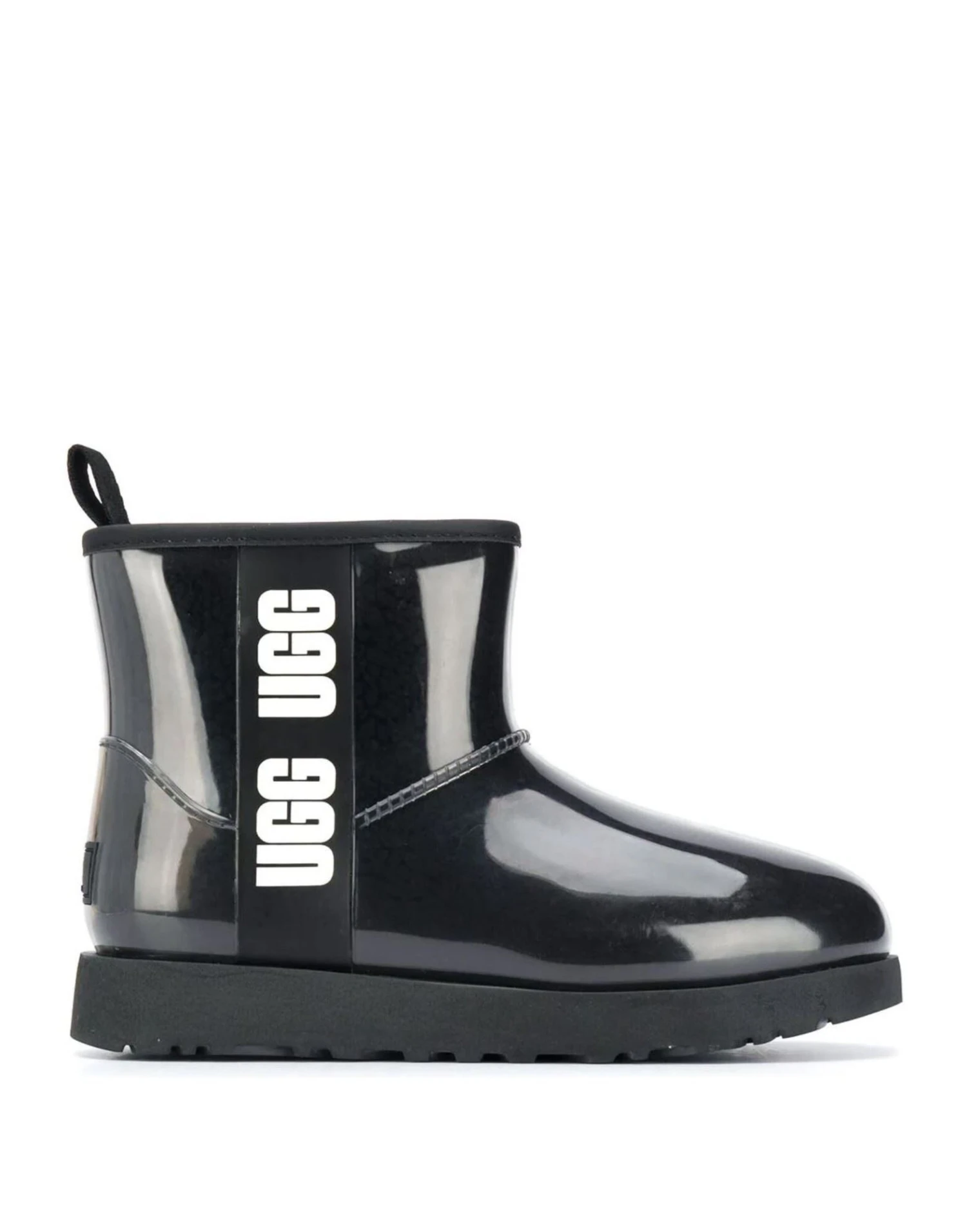 UGG Australia Classic Clear Mini Boots Black Stiefel Logo Gummisohle PVC Made in Vietnam