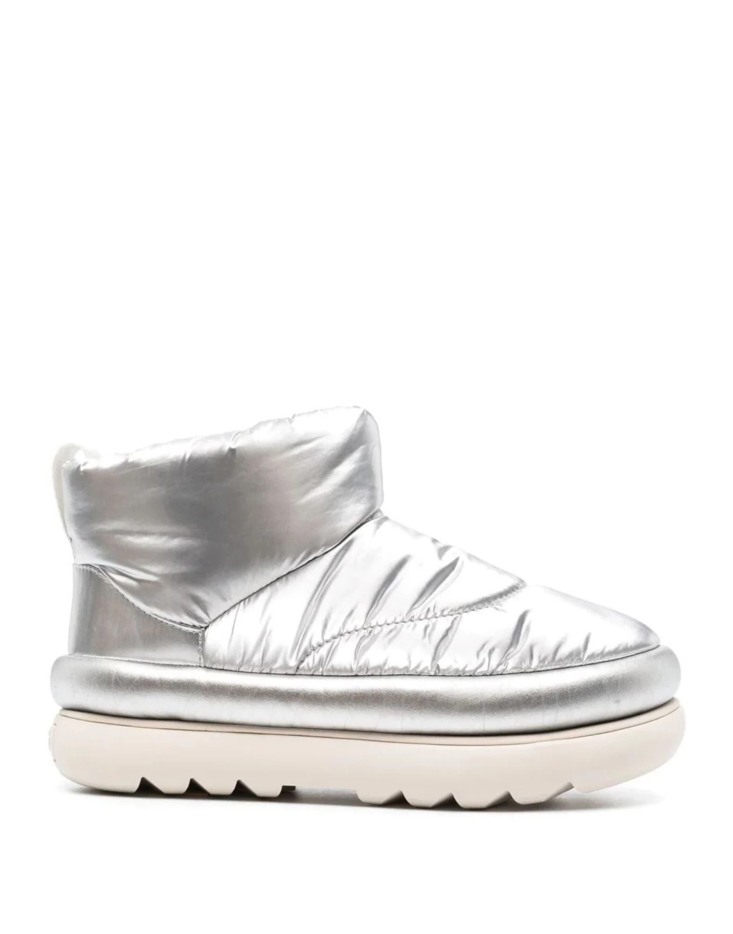 UGG Australia Classic Maxi Mini Boots Metallic Silver Stiefel Logo Gummisohle Polyester Made in Vietnam