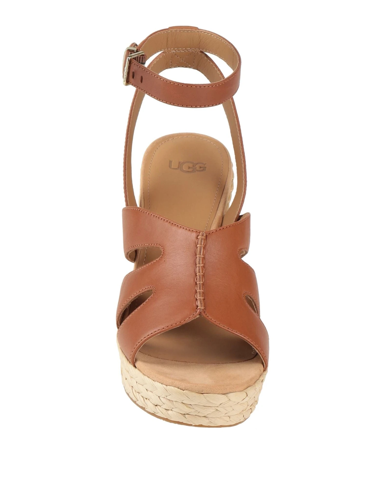 Leder, Brand Logo, einfarbig, Rückseite aus Leder, Fesselriemchenverschluss, runde Spitze, Keilabsatz, bezogener Keilabsatz, Gummisohle, Enthält nichttextile Teile tierischen Ursprungs., Espadrilles-Sandalen