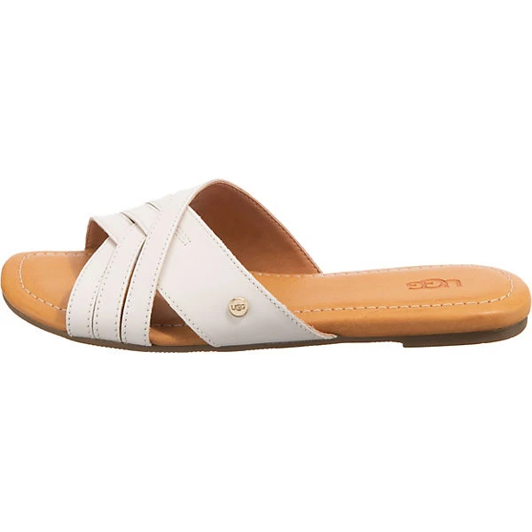 Perfekt zu vielen Gelegenheiten: Diese ansprechend gestalteten Pantoletten aus dem Hause UGG. Für ein angenehmes Trageerlebnis besteht das Fußbett aus Echtleder. Das Obermaterial zeichnet sich durch das echte, feine Leder aus.