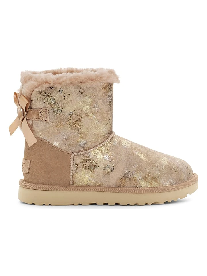 Ugg Leder-Boots „Mini Bailey Bow Gold Wash“ In Beige/ Gold