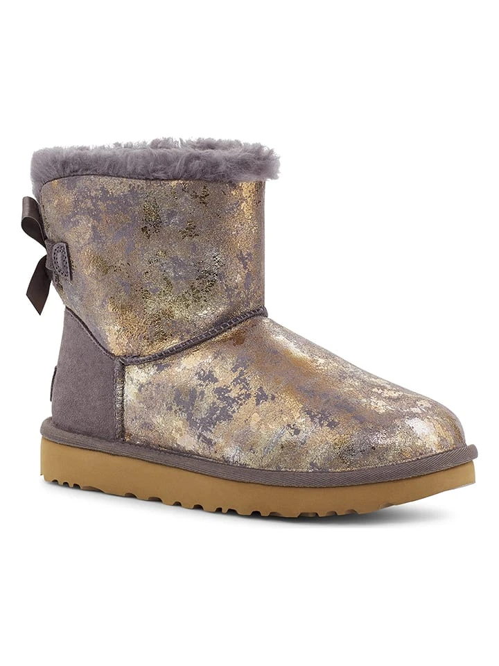 Ugg Leder-Boots „Mini Bailey Bow Gold Wash“ In Lila/ Gold