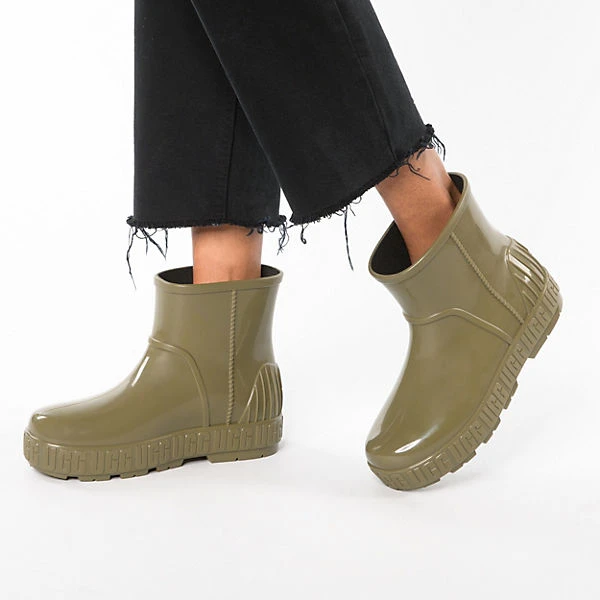 Diese Gummistiefel aus dem Hause UGG sind hervorragend für verregnete Tage geeignet. Es handelt sich um ein Schuhpaar zum flinken Hineinschlüpfen. Für ein angenehmes Trageerlebnis besteht die Decksohle aus Leder.