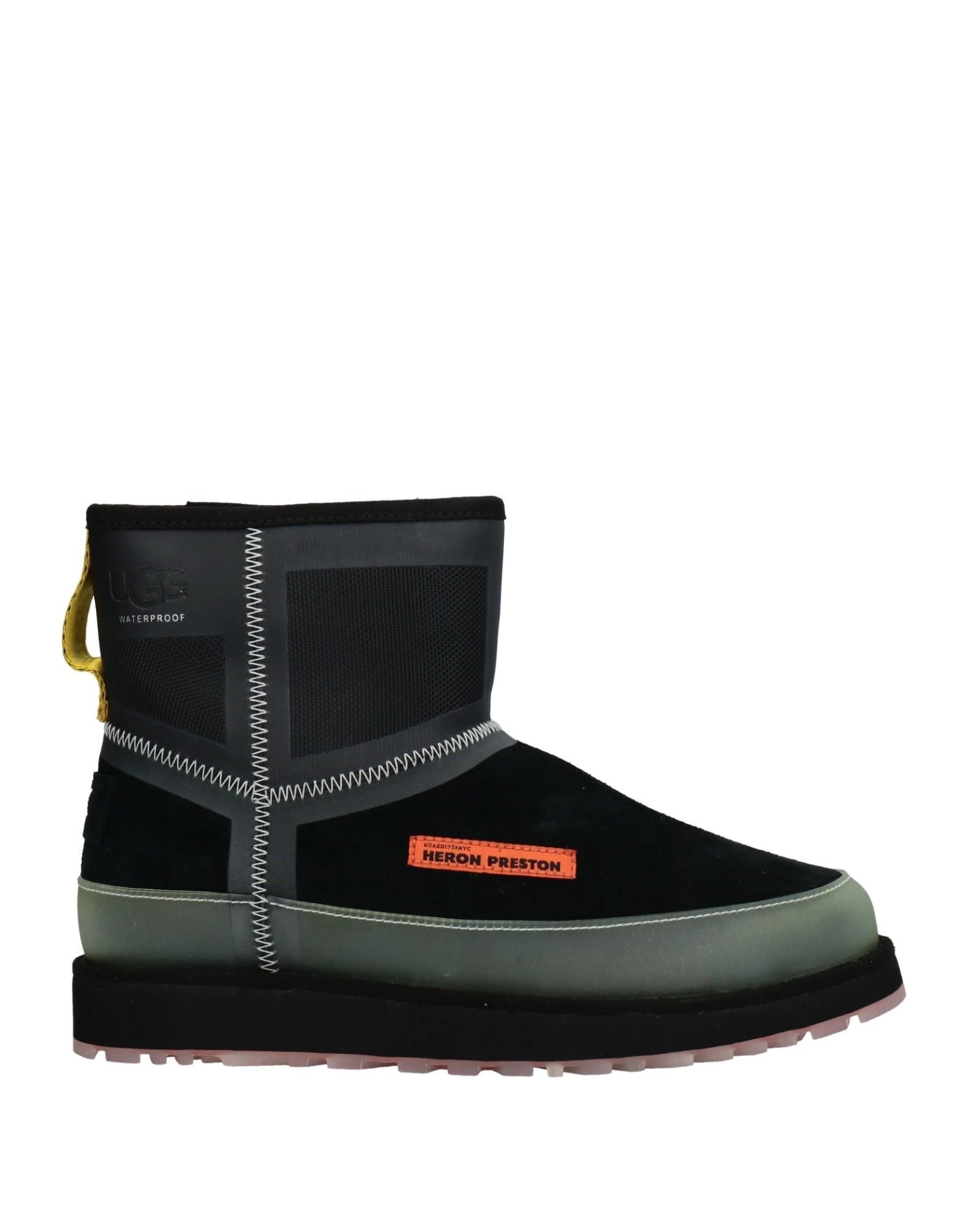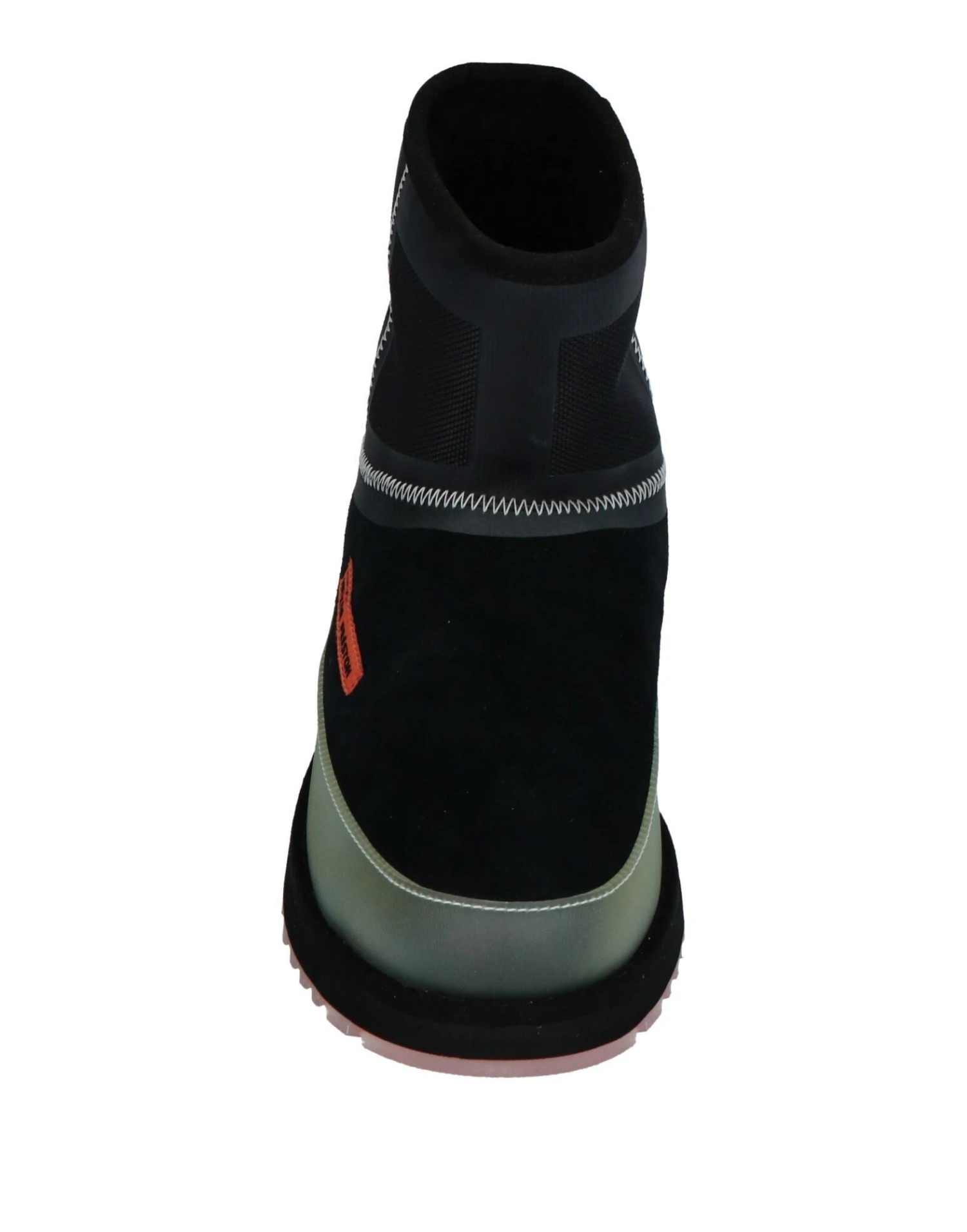 Hightech-Gewebe, Leder, Wildleder-Look, Brand Logo, Einfarbig mit Applikationen, Innenfutter aus ökologischem Kunstpelz, runde Spitze, ohne Absatz, flexible Gummisohle, Wasserfest, Enthält nichttextile Teile tierischen Ursprungs.